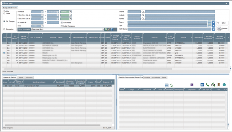 Se pueden generar automáticamente a partir de la aceptación de una oferta. Podremos gestionar la cartera de pedidos pendientes y programar tanto la producción como la entrega de las mercancías.