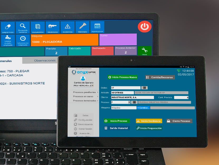 Es una aplicación especialmente desarrollada para tablets Android, esto nos permite total libertad en cuanto al lugar y el momento. Todos los datos se sincronizan con Onyx Captor cuando hay conexión a internet. Gracias a la app el operario podrá hacer seguimiento de los procesos pendientes, en curso y terminados.