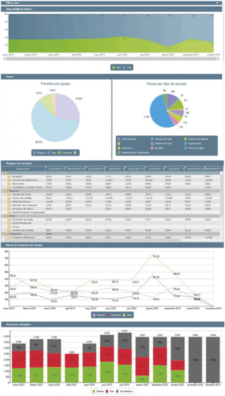 Podrás consultar el "Timeline" de cada máquina y los tres parámetros necesarios para el cálculo de la eficiencia de cada equipo (OEE).